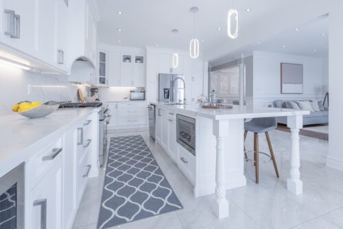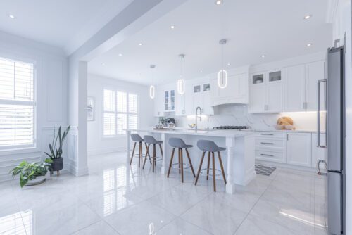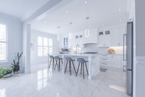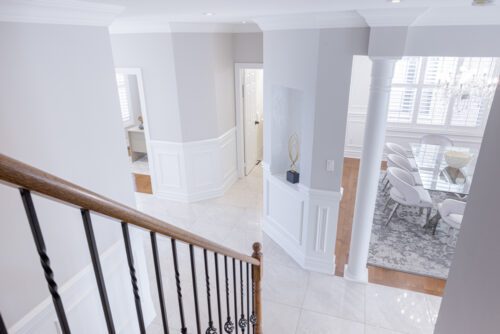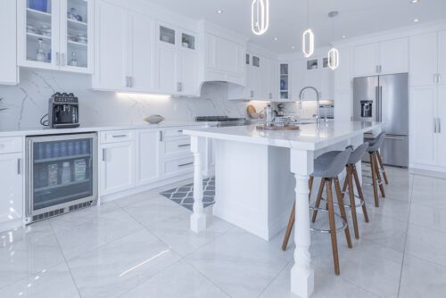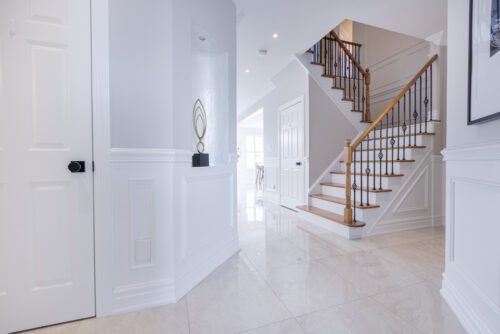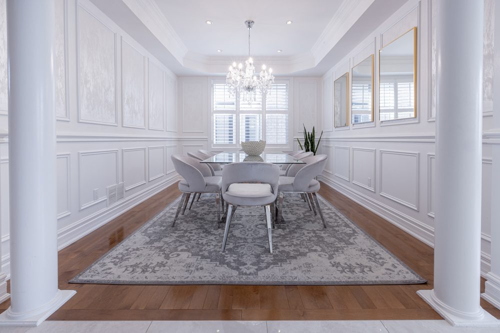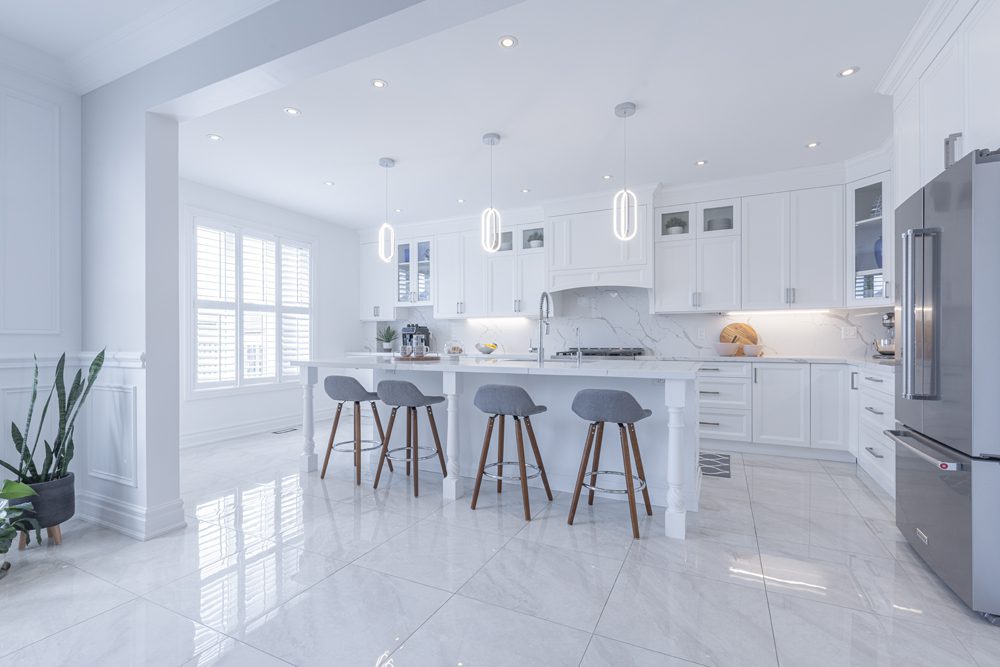 Inside and you’ll be greeted by a spacious main floor den, perfect for a home office or study area. The open concept living and dining area is filled with natural light, while the show-stopping custom gourmet kitchen is a true chef’s paradise. Boasting top-of-the-line appliances, Calcutta quartz countertops, and ample storage space, this kitchen is the heart of the home.