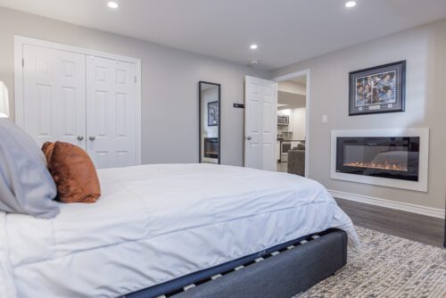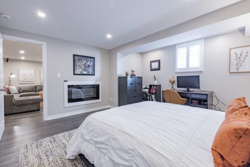 Upstairs, you’ll find four generously sized bedrooms, including a luxurious master suite with a walk-in closet and an ensuite bathroom. The fully finished basement is a great additional living space, complete with a second kitchen, a large recreational area with an electric fireplace, and an extra bedroom also with an electric fireplace- perfect for hosting guests or spending time with family.