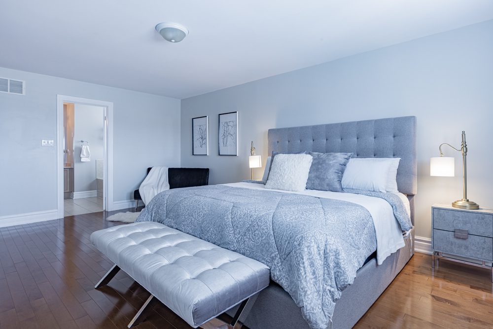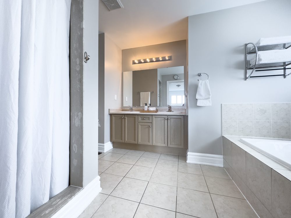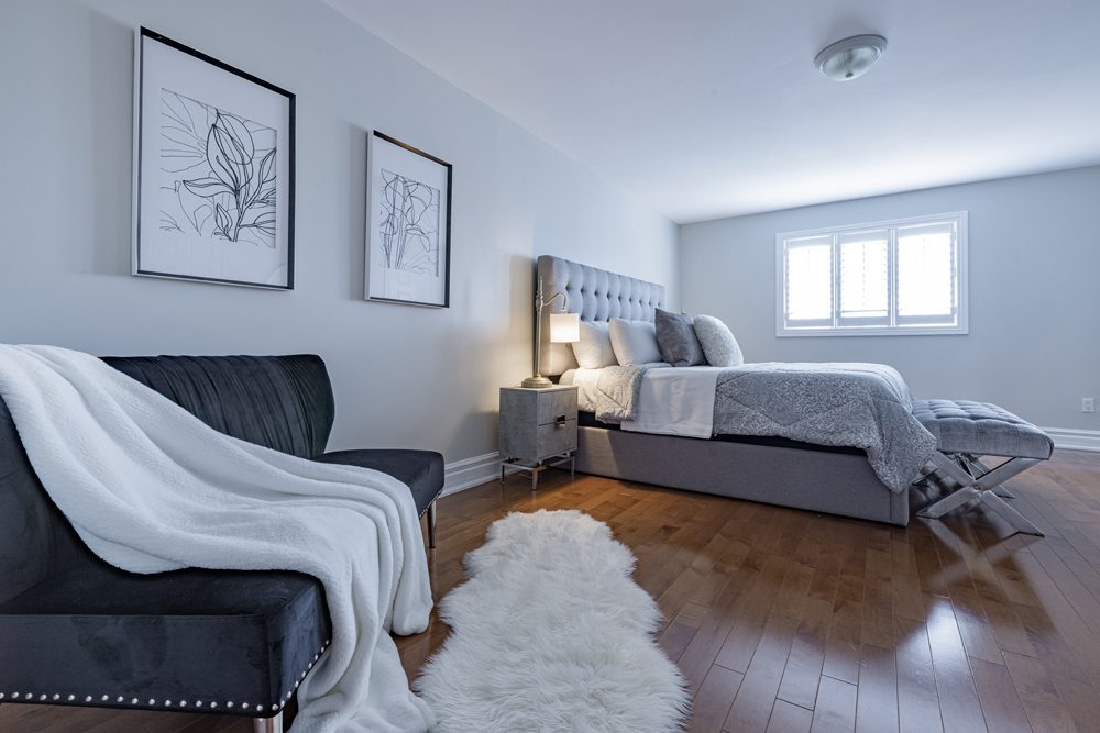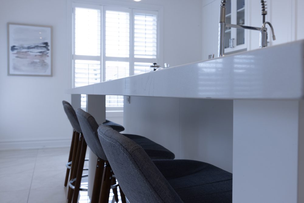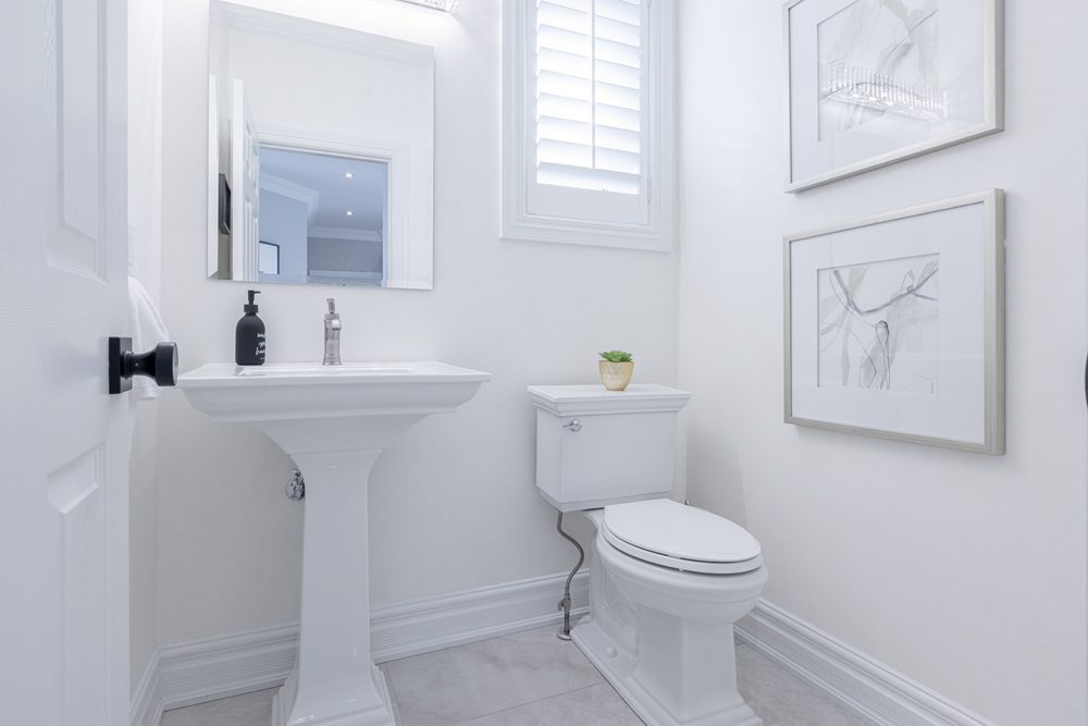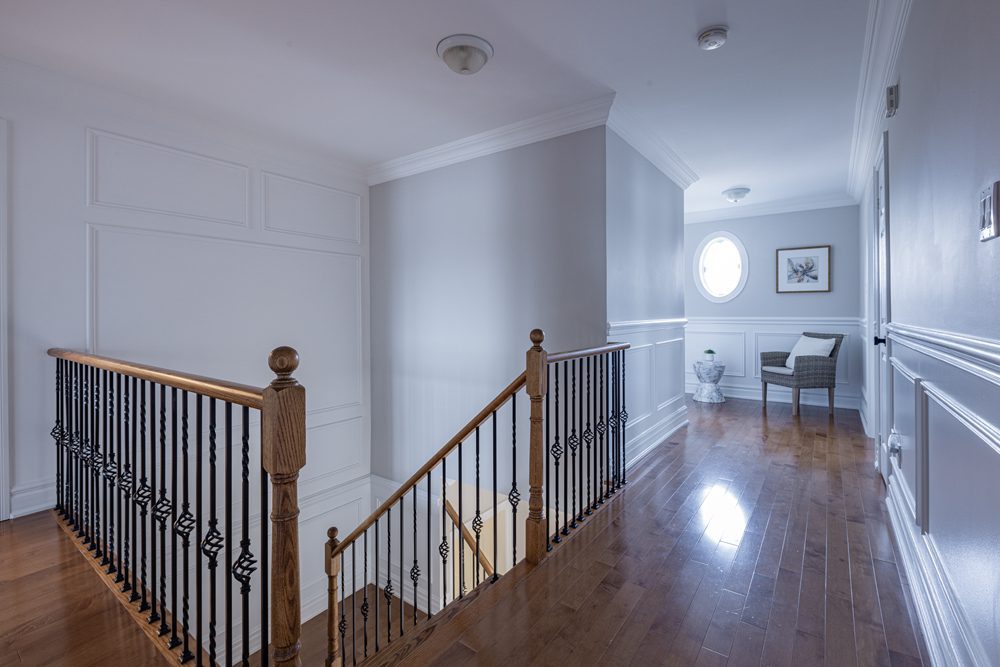 Inside and you’ll be greeted by a spacious main floor den, perfect for a home office or study area. The open concept living and dining area is filled with natural light, while the show-stopping custom gourmet kitchen is a true chef’s paradise. Boasting top-of-the-line appliances, Calcutta quartz countertops, and ample storage space, this kitchen is the heart of the home.