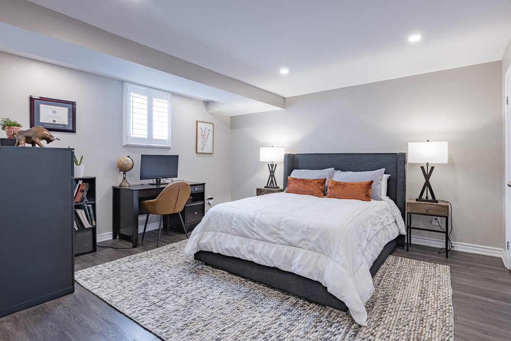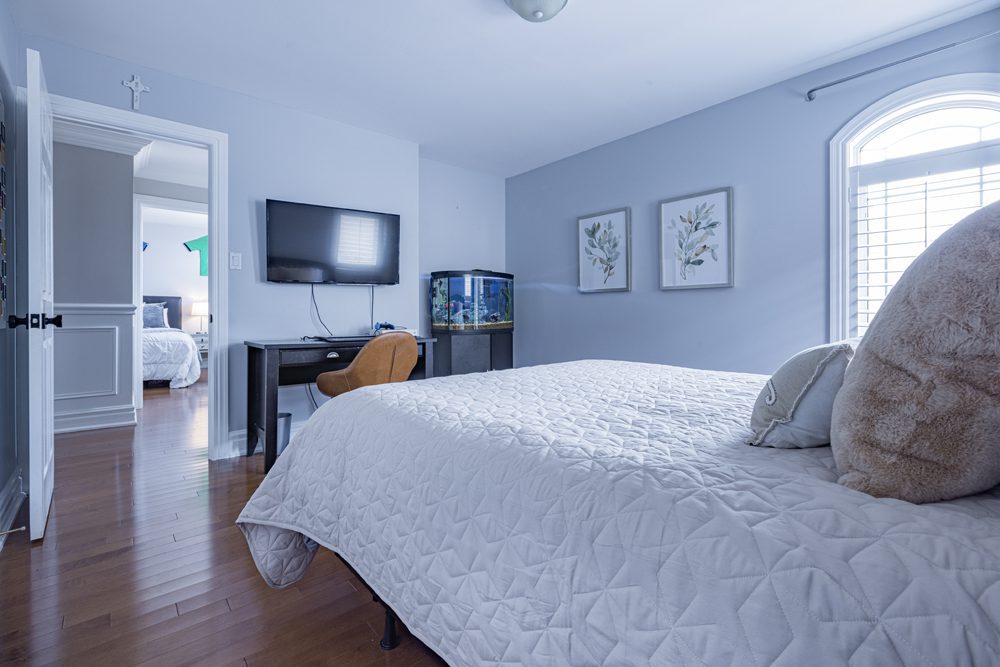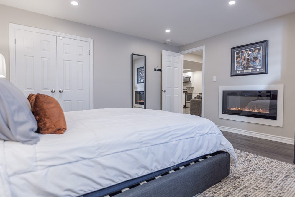 Upstairs, you’ll find four generously sized bedrooms, including a luxurious master suite with a walk-in closet and an ensuite bathroom. The fully finished basement is a great additional living space, complete with a second kitchen, a large recreational area with an electric fireplace, and an extra bedroom also with an electric fireplace- perfect for hosting guests or spending time with family.